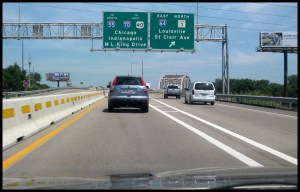 Right off the bat this morning I zoomed out of Ohio and through a small sliver of northern West Virginia that only lasted between 10-15 miles. The entry sign into W VA was overhead on I-70 and the picture that I took is hardly worth posting but I haven’t missed a state yet so here it is.