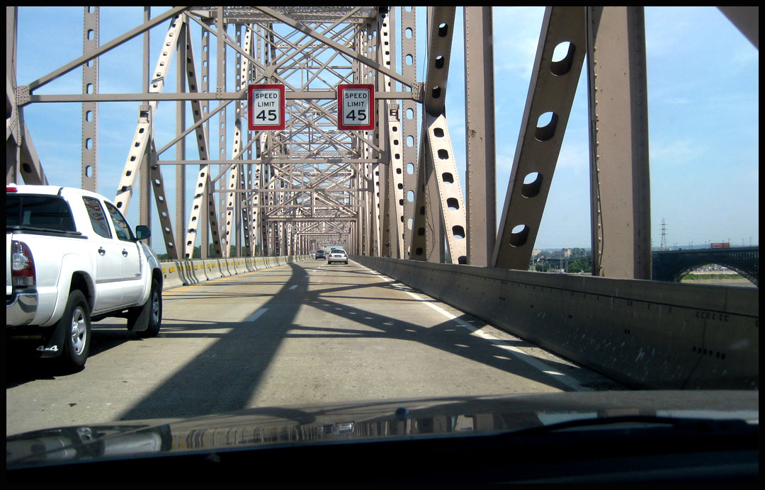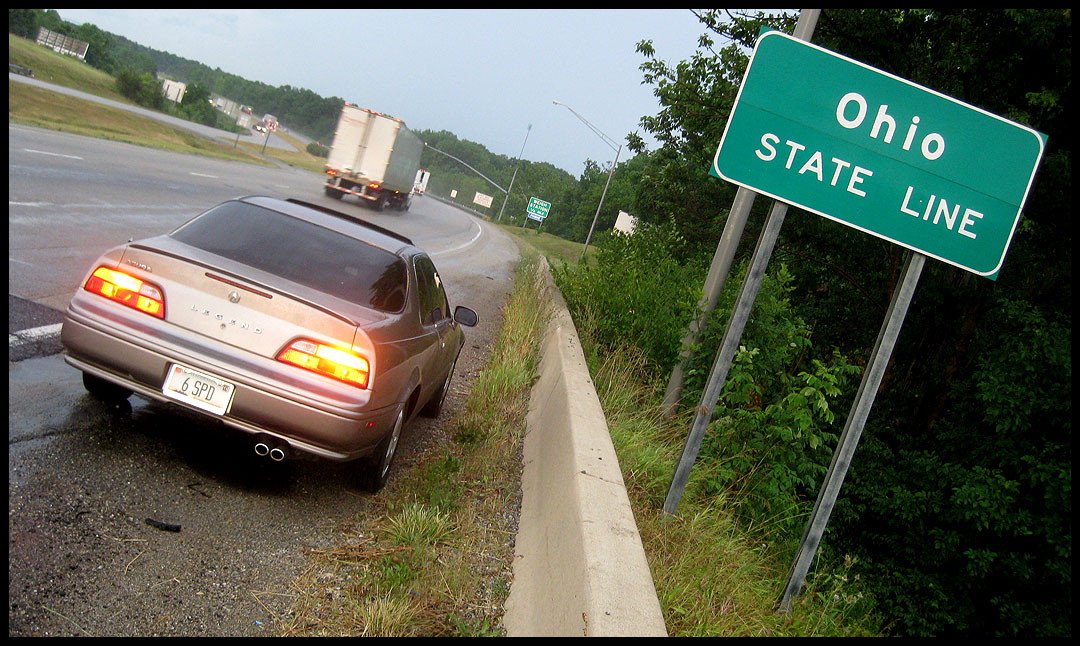 Pennsylvania felt like it crept along at a snail’s pace – a combination of repeated 45 mph construction zones, pockets of heavy traffic, winding roads, hills, and tollway stops made things take a little longer than any other state I drove through on this trip. When you enter the I-76 toll road, you pass through this gate to pick up your ticket/pass. I happened to be behind a truck hauling a bunch of new Mopars at the time.