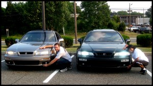 Here’s my friend Tom from CT inspecting some of the “JDM” (Japanese Domestic Market) goodies on one of the cars here. This particular toy is a pole that extends from the front bumper to assist in parking.