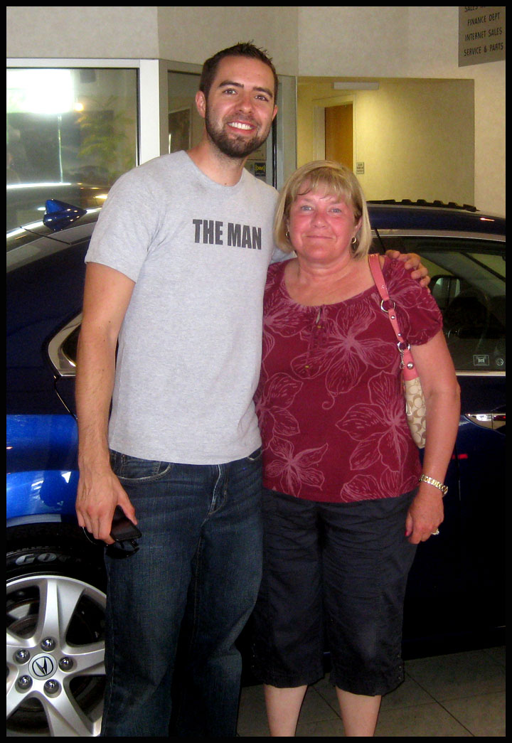 Celebrating my arrival with The King himself! Nick lives here in NJ and drives the Sherwood Green Legend GS sedan parked behind mine.