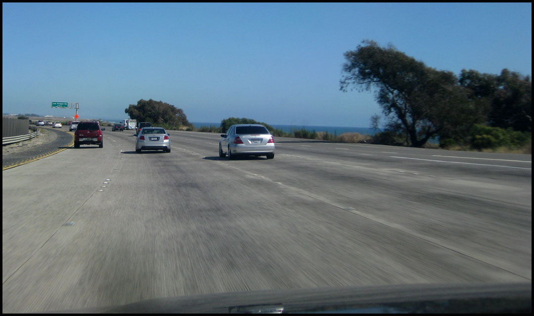 Yesterday afternoon I was cruising along southbound Interstate 5 in southern California enjoying oceanside views and within a few days, I’ll be just as close to the ocean on the complete opposite side of the country. The trusty old Legend once again endured a trip across the barren desert of western Arizona to sunny SoCal. I picked up my roommate Rustin at a hotel he’d been staying at in Newport Beach, but not without first fighting some of Los Angeles’ classic gridlock. It’s always amazing how a six or seven lane freeway can be stop and go on a weekend for no apparent reason. That’s what I encountered on the 91 and 55. Things finally opened up a bit along the 5. There’s the Pacific to the right.