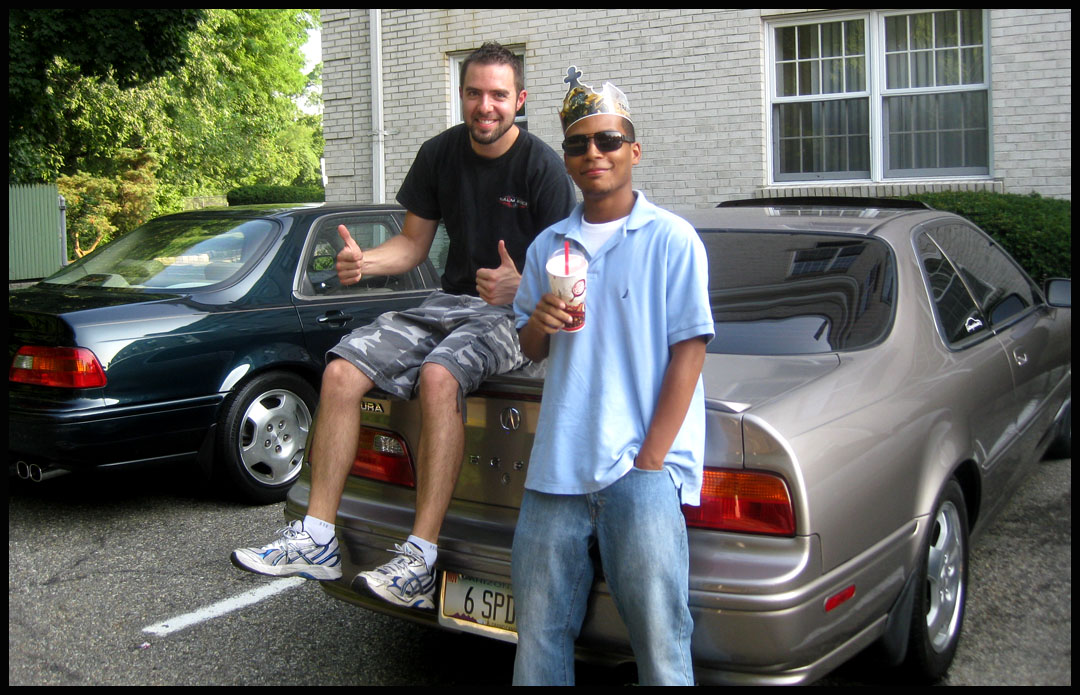 Celebrating my arrival with The King himself! Nick lives here in NJ and drives the Sherwood Green Legend GS sedan parked behind mine.