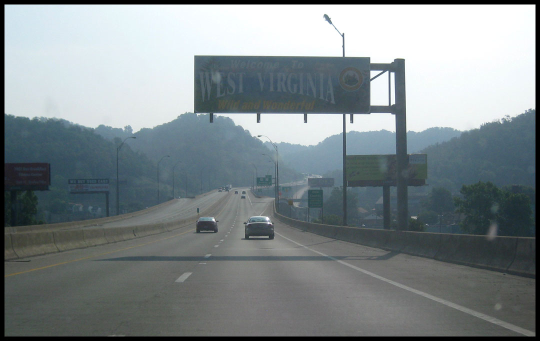 Right off the bat this morning I zoomed out of Ohio and through a small sliver of northern West Virginia that only lasted between 10-15 miles. The entry sign into W VA was overhead on I-70 and the picture that I took is hardly worth posting but I haven’t missed a state yet so here it is.