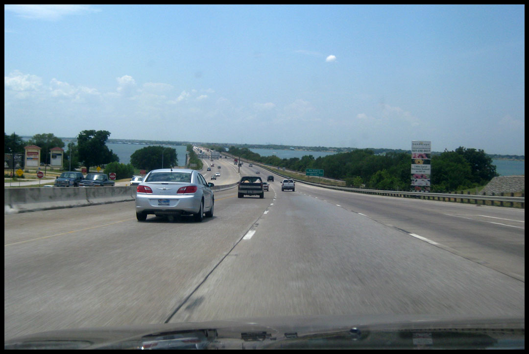 Approaching Dallas on Interstate 30 and crossing through Hubbard Lake.