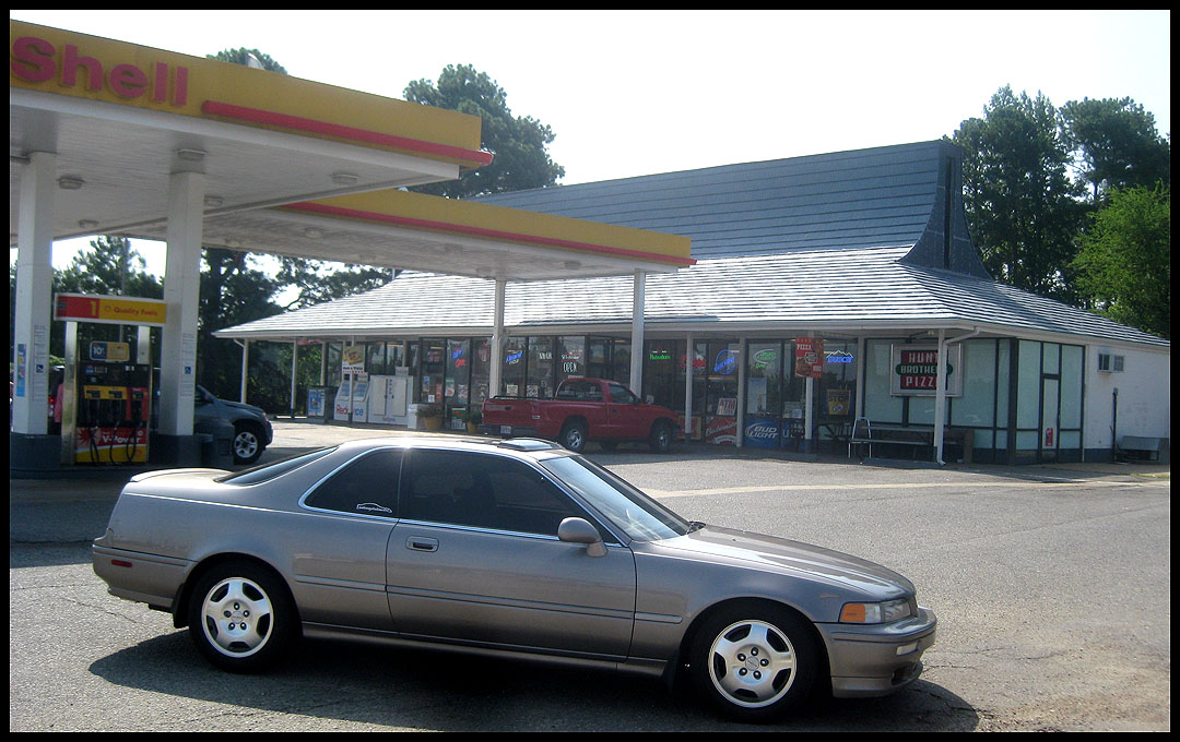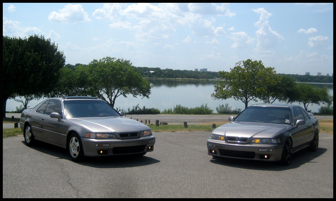 I went to my good friend Jeff’s place and viewed his two immaculate Legend coupes. He has a twin car to mine — 1994 LS 6-speed coupe, Desert Mist Metallic with Taupe interior. I consider it my car’s “evil” twin because it’s got all of the toys I’d like to put on my car if I had the money and didn’t beat it up on the highway so much. Acura A-Spec wheels, JDM one-piece headlights, sport tuned suspension, clear/red taillights, Remus exhaust. The list is way too long. I had the privilege of taking it for a spin and enjoyed every second of it. Feels like a completely different car from mine. Jeff also drove mine around the block.