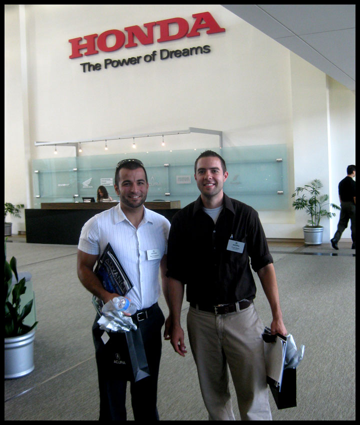 My car-nut friend Matt handled navigation duties from the shotgun seat while we found our way to Honda America’s corporate office this morning.  Some very loud Metallica music and a pit-stop for caffeine assistance at Starbucks in Indio, California helped us overcome the lack of sleep and 5:30 a.m. departure.  I missed the photo-op for the 489,000 milestone somewhere on the 91 freeway.  We arrived at our destination a few minutes ahead of schedule and I was thrilled to have a few minutes to stretch my legs.