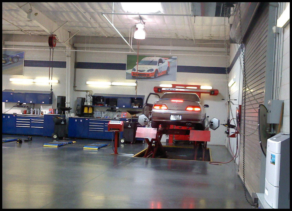 Yesterday, I had the car’s oil change and a full alignment performed by Acura of Tempe. The alignment was pretty far out of spec since I had the rear upper control arms changed at about 487,000. The technician recommended having the front upper control arms done sometime in the near future. There were no additional comments, but I received another one of the 140-someodd service reminder stickers that have been placed at the top left corner of my windshield and I was sent on my way for the next 3,000 miles. Here is a shot of my car in the service bay for alignment.