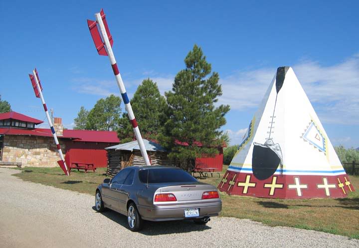 And finally I buzzed over past Mancos, Colorado at a gift shop near Mesa Verde National Park where telephone poles have been driven into the ground sideways and painted like giant arrows.