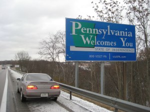 Jew Jersey – couldn’t pull over; the sign was in a median and I was on the far right lane!