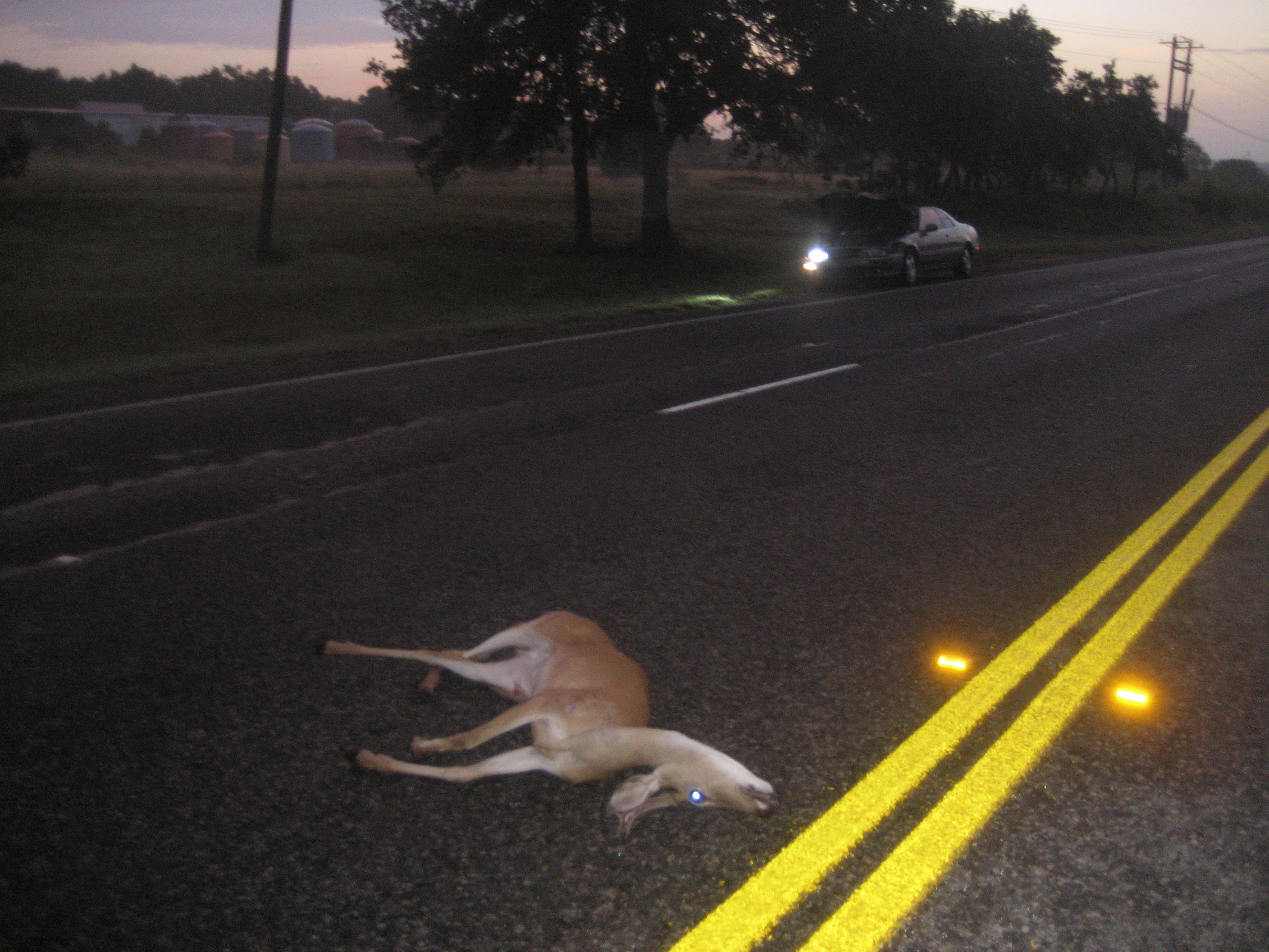 The following morning, an early departure again found me on Highway 290. Here’s where it gets interesting — surreal, even. I hit ANOTHER deer and wiped out the driver’s side front end. At this point, you heard me right, I’d hit two deer on the same stretch of road within 24 hours of each other. Apparently lightning does strike twice in the same place.
