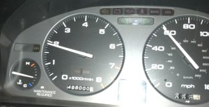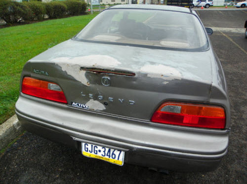 Sadly, as I’ve learned, time can take its toll on an automobile too. Did anyone else notice the “mechanic special” 1994 Acura Legend coupe on Ebay right now? It’s a near twin to mine in Desert Mist Metallic paint except in L model trim and with an automatic transmission. This particular Legend, with VIN ending in production number 239, rolled off the assembly line in Japan just 593 vehicles before mine did, back in the end of 1993. Now 18 years later, it has only 134,000 miles (26% of what mine has) but it looks like it’s been driven through a war zone. Those were rough miles.