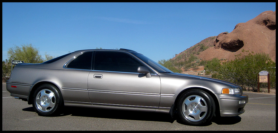And on the opposite end of the mileage spectrum, last weekend I visited my good friend Chuck who’s had his pristine 1993 Acura Legend LS coupe since 2004.  It’s only got 29,000 miles on it and the leather looks absolutely brand new underneath the sheepskin seat covers.  You can also see Chuck’s 1981 Civic CVCC wagon in the background – pretty incredible condition for a 30 year classic car.