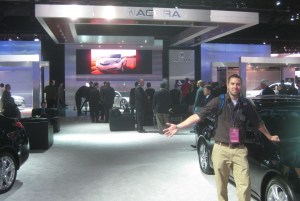 The Press Schedule was distributed to us upon arrival. Acura’s 25-minute time slot was at 2:35 p.m. on Monday; Honda’s moment in the spotlight was the following morning. A few of us staked out the front row of the Acura booth so that we had a perfect line of vision for the big 3-car unveil.