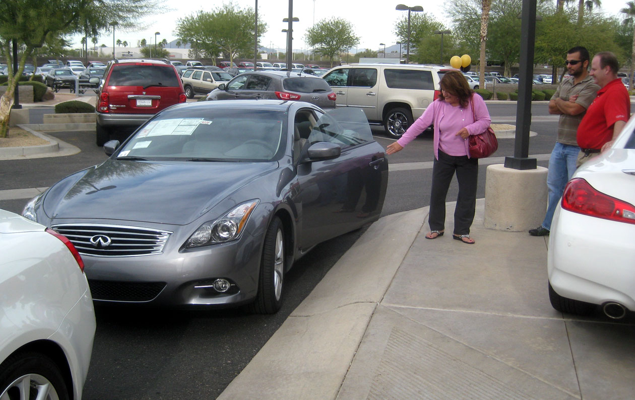 How’s that for an illustration of mileage differences! I had the opportunity yesterday afternoon to accompany my friend Matt with his mom who was looking for a new vehicle. She ended up buying a gorgeous graphite-colored Infiniti G37 coupe that had 20 miles on it, or about 505,370 miles less than my Acura Legend! New off the lot. I wonder if I’ll ever own anything so new.