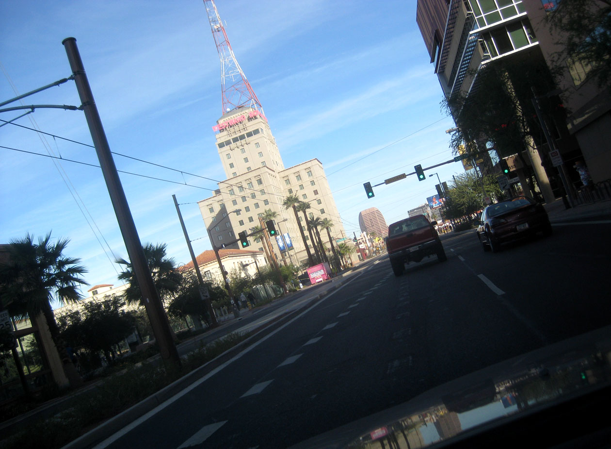 After picking up our runner information packets at the Phoenix Convention Center on Saturday morning, we drove up historic Central Avenue to meet a couple of friends for brunch at The Good Egg. En route, we passed by a number of important landmarks, including this hotel called the Westward Ho. Completed in 1928, it was the tallest building in Arizona until 1960. The hotel itself closed in 1979.