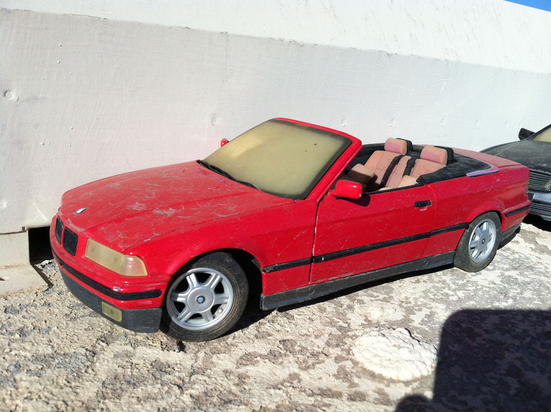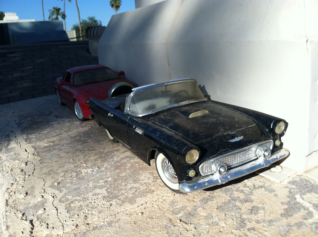 Thought I’d also share an update from my rooftop science experiment, too. Anyone who follows my blog knows that I’m all about making things last. About two years ago, I thought I’d have a little fun with automotive durability testing on a smaller scale (1:18 scale, to be exact). I was getting ready to get rid of some die-cast model cars but decided instead to see how the paint and interior finishes stand up to the Phoenix, Arizona extreme climate on top of my roof. It’s been fun to watch!
