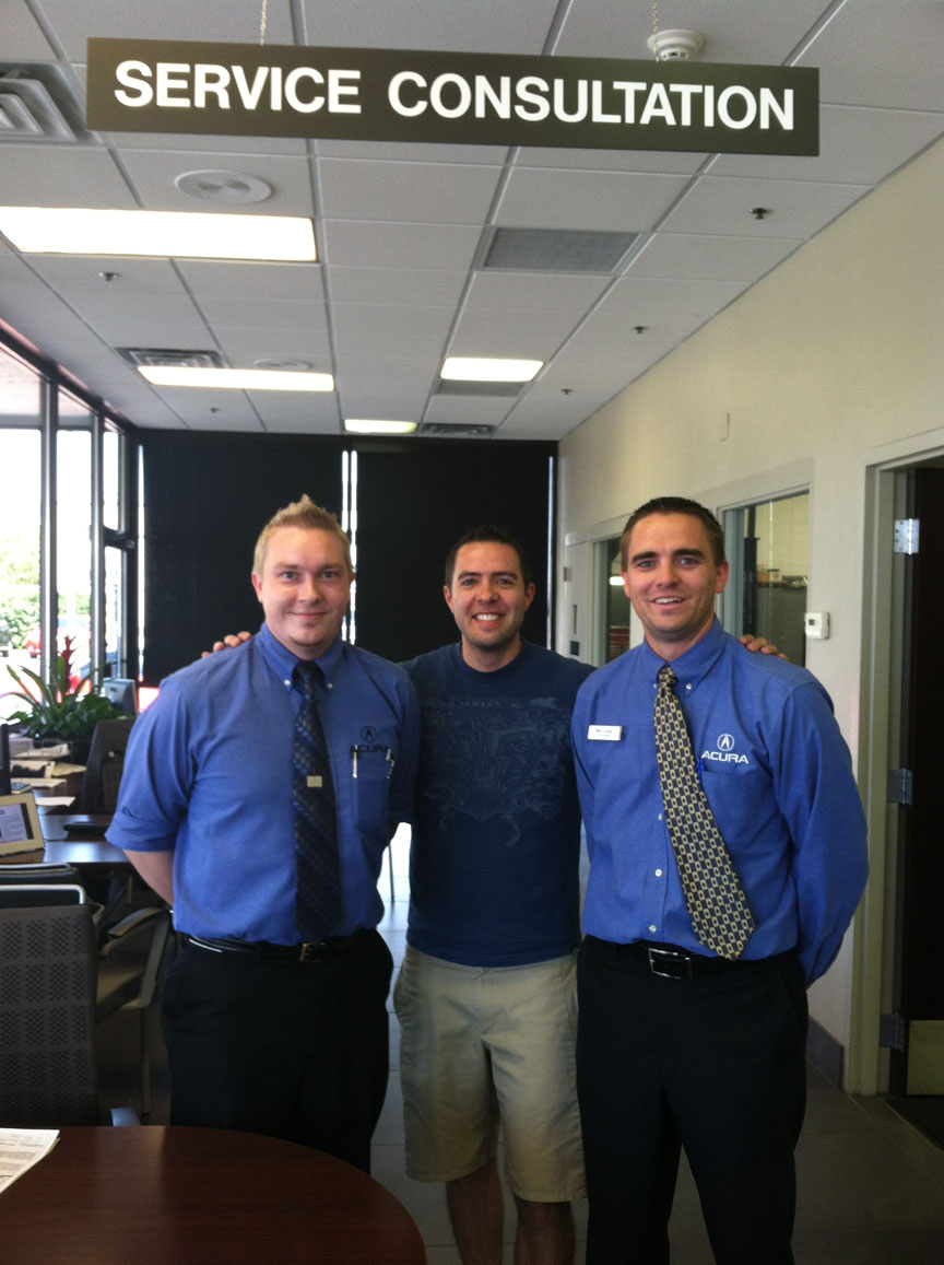A visit over the weekend to a place that has worked on my Legend a number of times:  Jody Wilkinson Acura.  Pictured here with two core members of the service team there:  Alex and Allen.  The Jody Wilkinson dealership in Salt Lake City, Utah hosted the National Acura Legend meet in 2008.  Great people and great service, always.  Thanks guys for playing a key role in the drive to five and beyond.