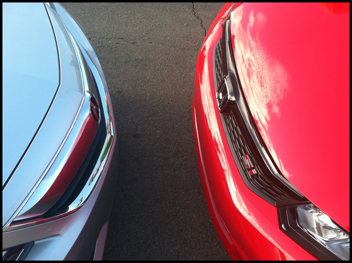 I visited my local friend Woody who just recently picked up a sporty 2012 Civic Si.  Woody’s “Rallye Red” 6-speed ride has been named Rosie.  She’s got 700 miles on the odometer.