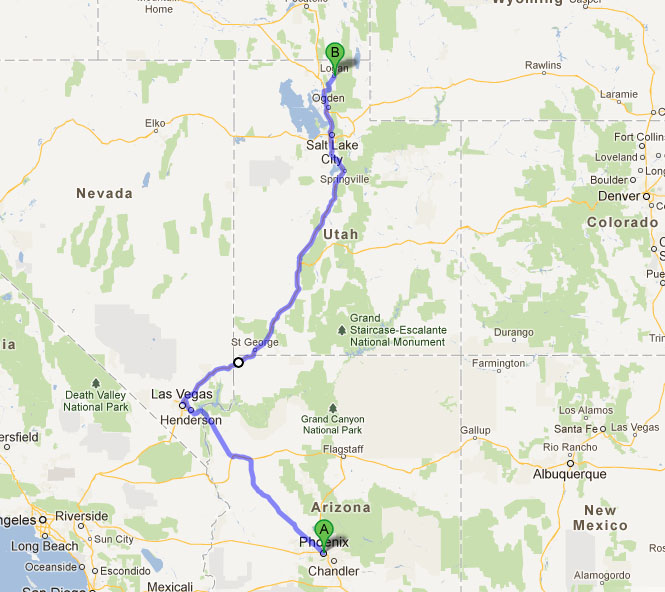 Well, it’s time to give this old ride a fresh look.  My brother has arranged for some paint work on the old car to get it looking showroom fresh, so I drove the Legend to St. George, Utah this weekend to leave it with him for a few weeks.  Here are the pictures from my 400-mile trip to Utah last weekend.