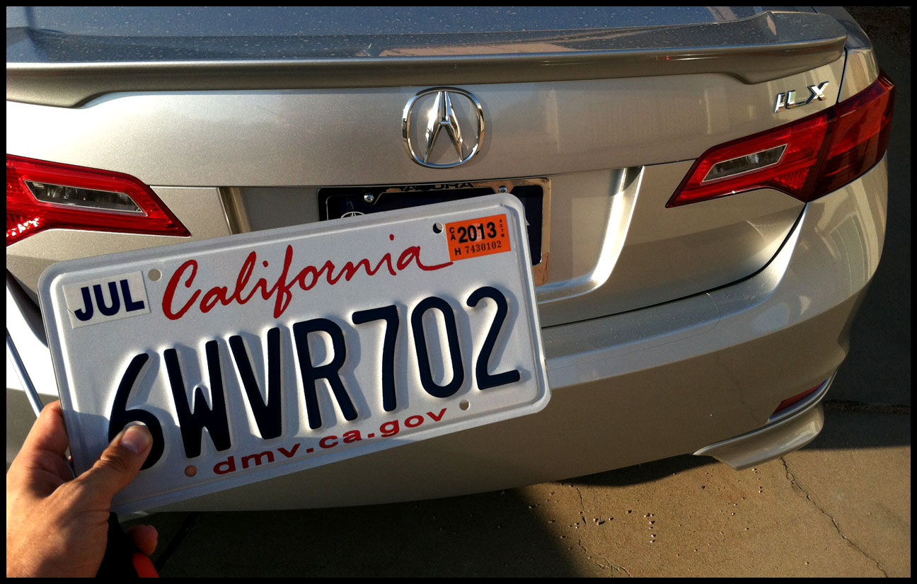 Got my California license plate! My ILX is registered to American Honda Motor Company at the Torrance, California headquarters.
