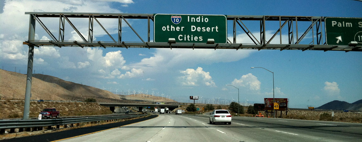 Once I rose out of the LA metro area, I saw the one of my favorite signs– “other Desert Cities” — on I-10 westbound.