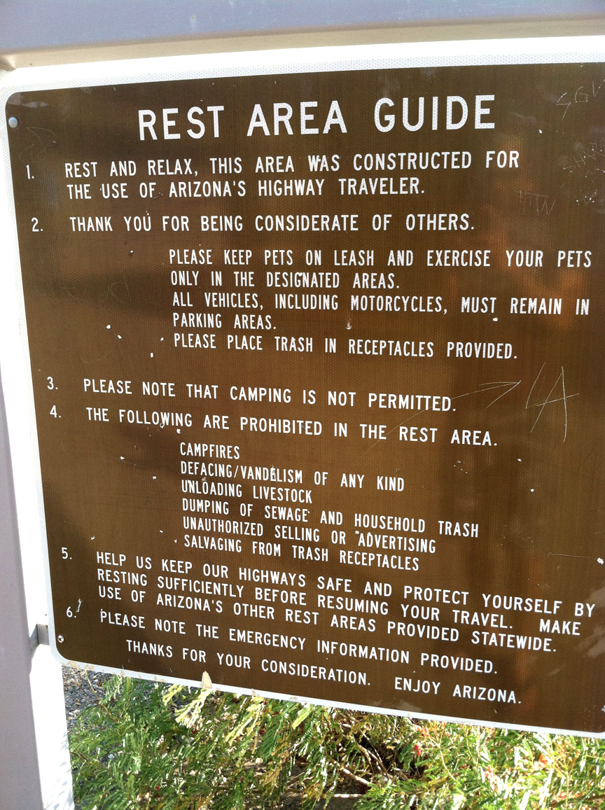 Understandably, I needed to stretch my legs a little after having been in the car for over 10 hours at this point, so I read the Rest Area Guide.