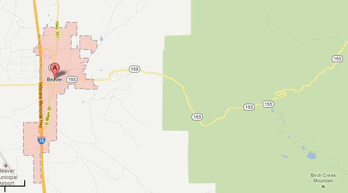 Beaver‘s a 2,500-resident town that claims its fame as being the birthplace to Philo T. Farnsworth (inventor of TV) and the birthplace of Butch Cassidy. Beaver is also home to the ‘best tasting rural water’ , based on a 2006 contest that spanned the entire United States. We didn’t stick around town long enough to appreciate the water, but instead continued our drive and climbed State Route 153 to the east which would lead us up the Tushar Mountain Range, shown as the curvy yellow road in the following map.