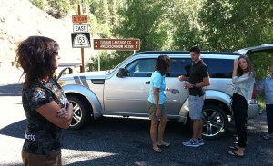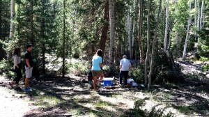 As it turns out, having a high clearance vehicle was definitely a necessity. The detour was full of washboard, ruts, and huge potholes that bounced us around plenty. We maxed out at 10,000 feet in elevation – this road was way up there! We did make it safely to our destination (though an hour or so delayed) and pigged out on our picnic lunch. Here are some pictures from our Saturday activity.