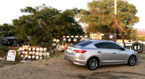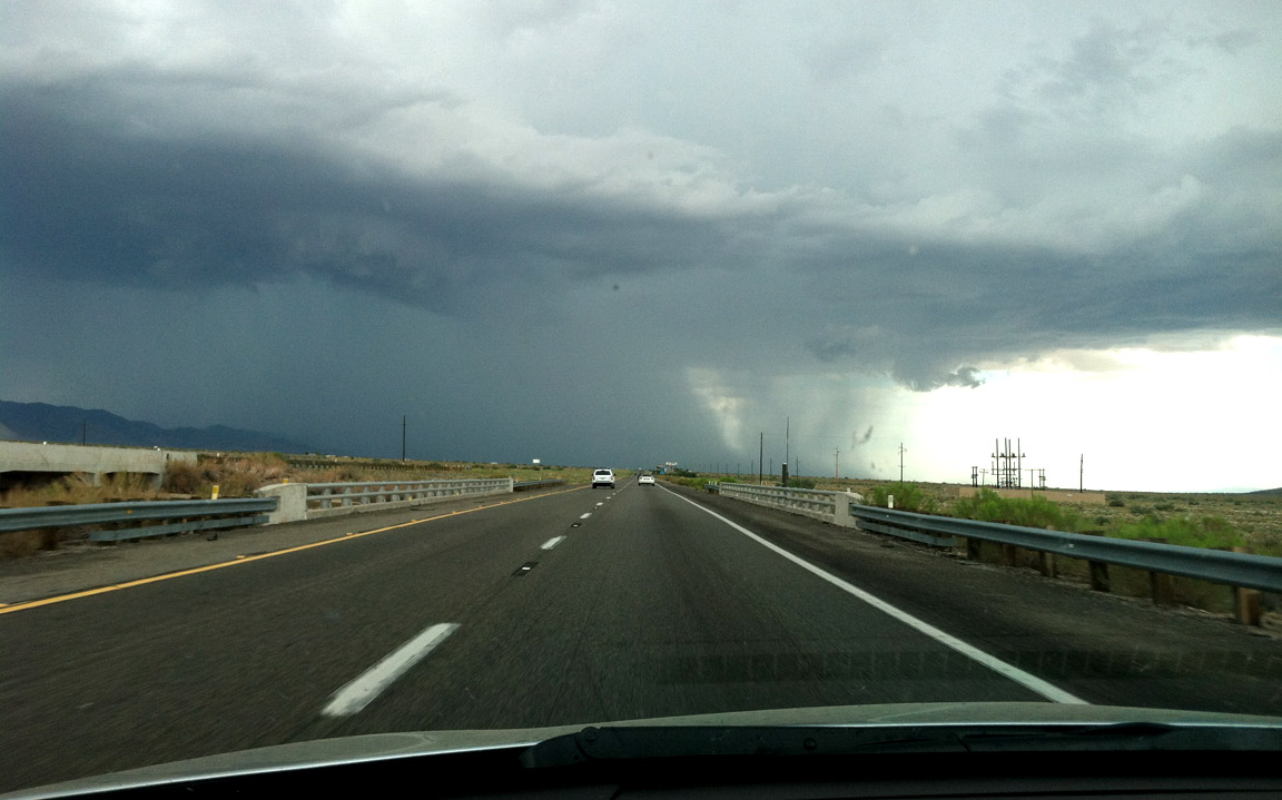 I observed 34 mpg in the ILX from Mesquite, Nevada to Kingman, Arizona, about 150-160 miles away. Just north of Kingman on Highway 93, some ominous storm clouds loomed just ahead. Sure enough, I got dumped on. The volume of rain was so bad, in fact, that many cars had pulled off to the side of the road and were waiting the storm out with their emergency flashers activated. I motored on at a safe rate of speed and got through without any issues.