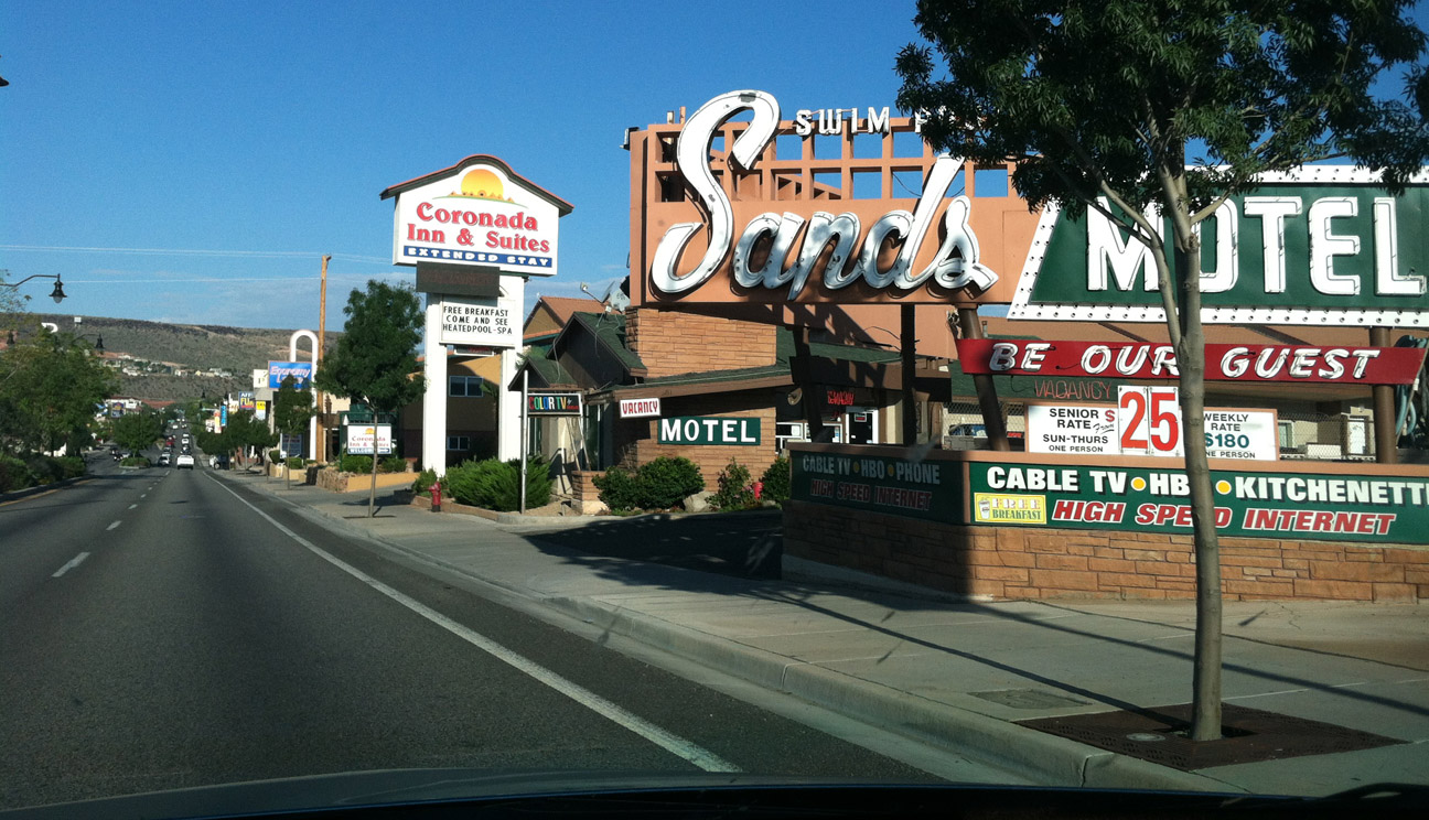 Highway 91 in St. George became known as St. George Boulevard and is still one of the main arteries through town. While many of the old relics of the mid-1900’s have long since been demolished, a few motels like the Sands Motel are still in operation.