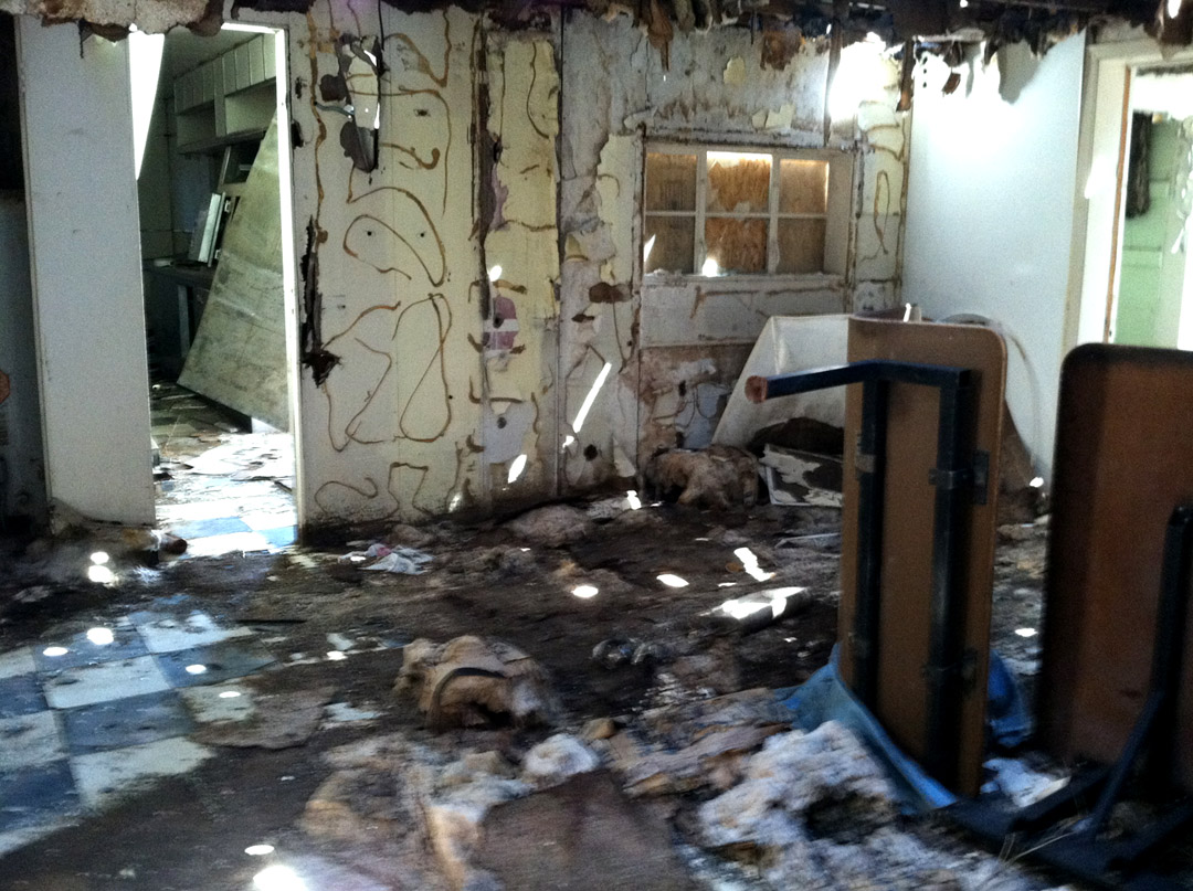 However, the cafe was closed that year and the last 14 years have really taken their toll. The arrows themselves were restored in 2009 but the rest of the property has become a trash pile.