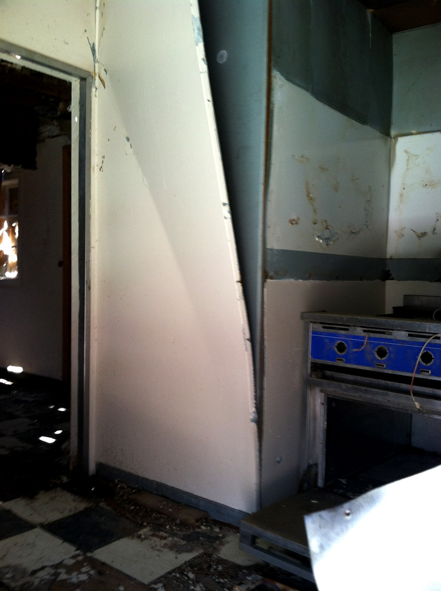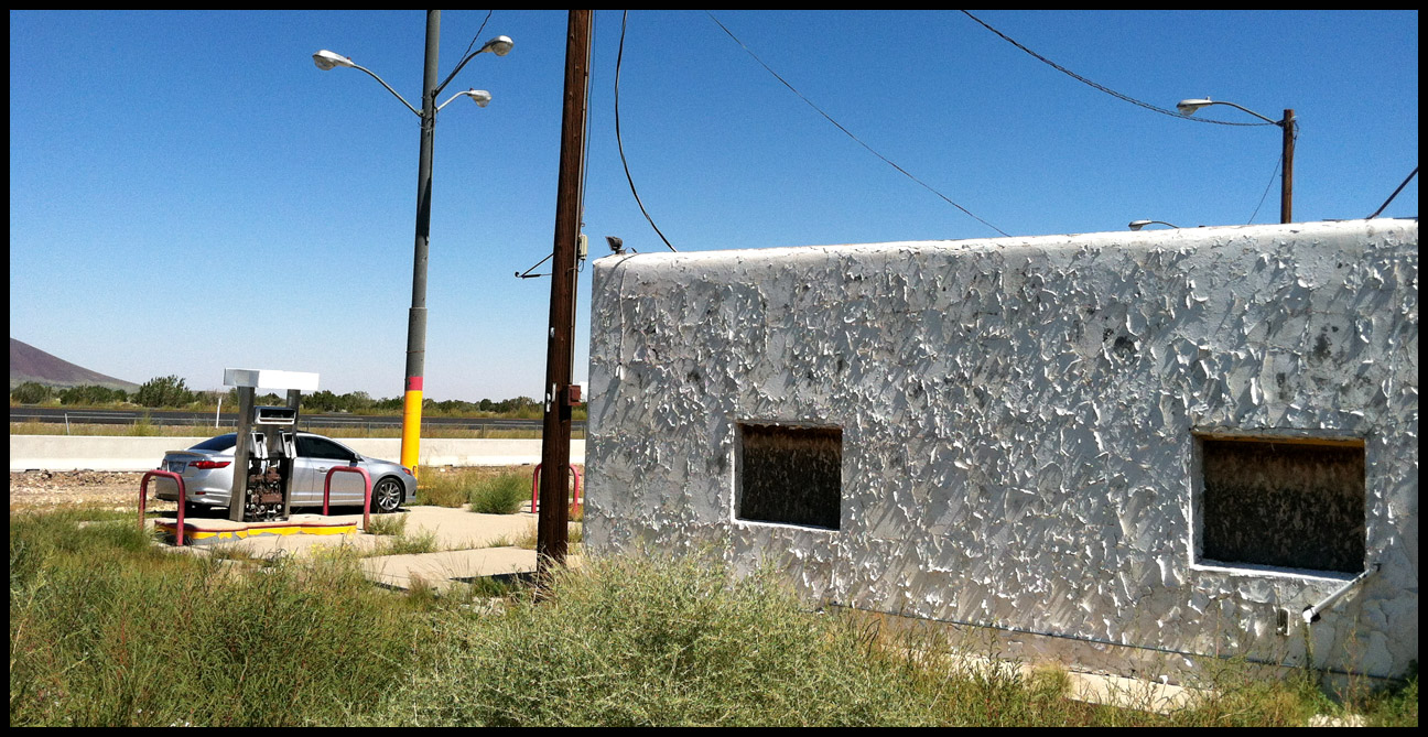 Even up until this picture was taken in 1998, the cafe was pretty well kept. In further research, I learned that this cafe is in fact a “Valentine Diner.” A Kansas-based company mass produced these metal diners and delivered them to their destinations on flatbed trucks. This is reportedly one of 7 remaining prefabricated Valentine Diners left standing in Arizona.