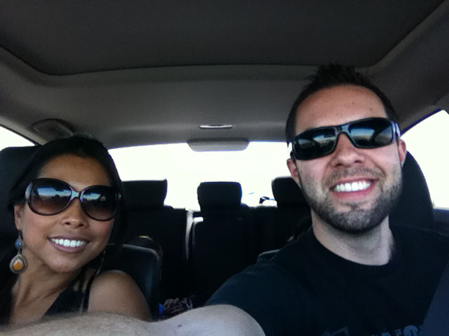 First order of business was a riding tour of the grounds. As I hopped into a white 11-passenger Nissan NV people-hauler van for a tour around the track, there was a family that joined on my particular tour. It was Randy and Ilene Rodriguez with their two small children. Randy is a lead designer at the Nissan Design Center in La Jolla, California. He’s also the “father” of the revolutionary exterior of the current Nissan 370Z bodystyle which debuted for the 2009 model year. Here’s a picture of Randy with his creation at the Toronto Auto Show that year.