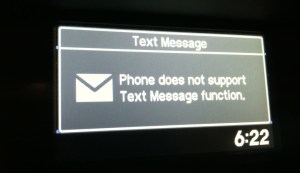 Still getting the same error message when I go to the Text Message selection on the menu in the car. Thanks for your help – I’ll get this figured out sooner or later. It’s not even something I really “want” that badly – it’s just something I want to figure out for the sake of seeing how it works.