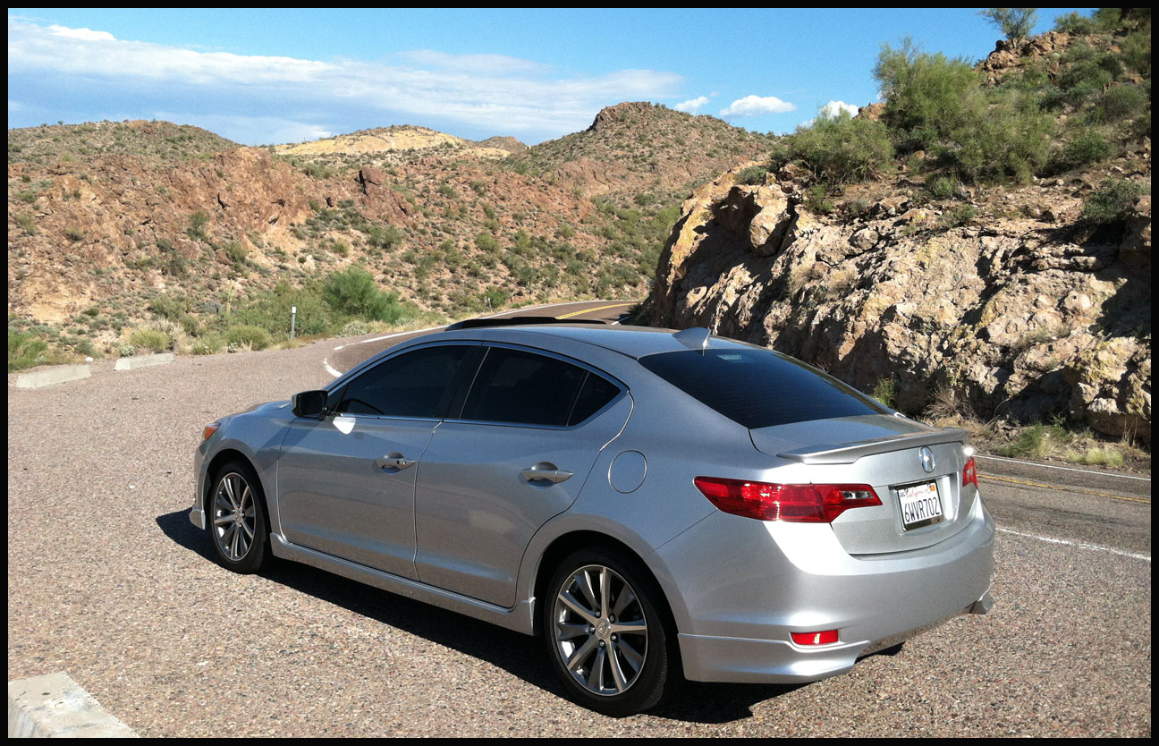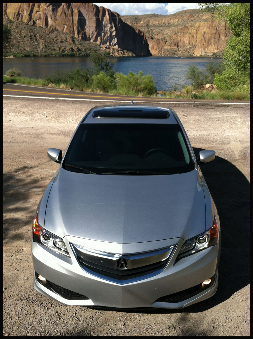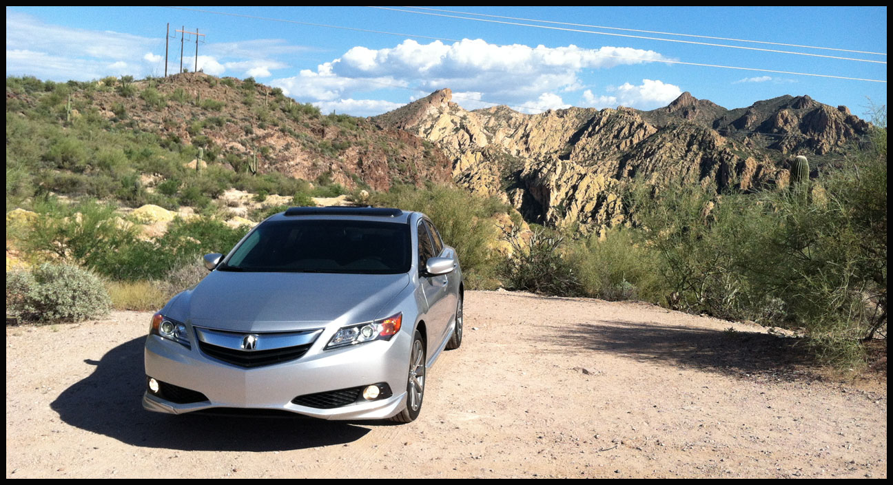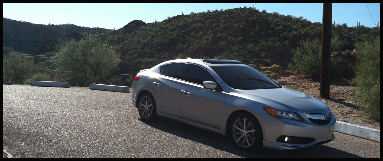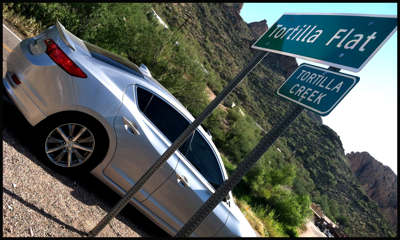 Since the ILX hadn’t yet driven Arizona Highway 88 – the “Apache Trail” – I decided to take a quick Saturday afternoon ride up to Tortilla Flat.  This road a favorite among motorcyclists and sports car drivers due to its highly technical nature.  It made for a perfect setting to run the ILX 6-speed through its gears.  This place is located northeast of the Mesa, Arizona area – shown here at Point A.  The squiggliness (my computer doesn’t think that’s a real word) of the line for Highway 88 should tell you something about how fun the curves are!