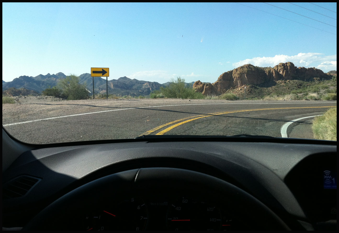 Just a few miles after rolling through Tortilla (and a lot more curves) the pavement ends.  The next 20 or so miles of road are dirt until arriving at Roosevelt Lake.  I drove this dirt road in my Legend a few years back but I wasn’t about to subject my new car to that type of terrain!