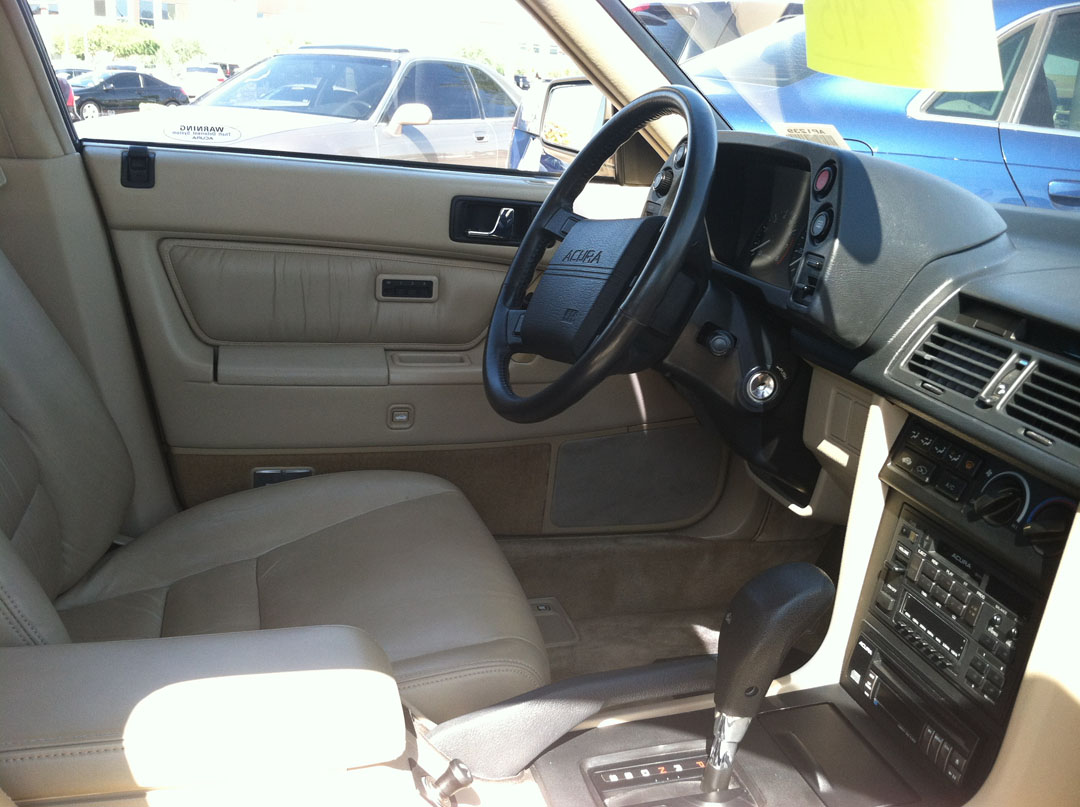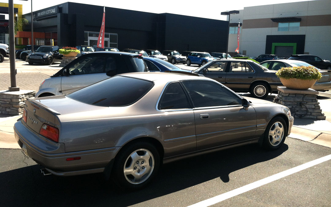Today I visited one of the 3 Phoenix-area Acura dealerships, Acura North Scottsdale.  My friend Dave tipped me off on a minty delicious 1990 Legend L sedan in Tuscany Taupe Metallic with a mere 25,563 miles on the odometer — quite the contrast from my experienced 1994!  That comes out to just 1,162 miles per year that were put on this beauty.