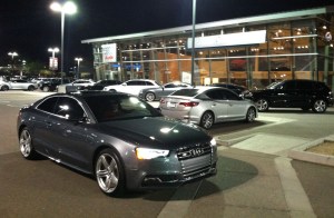 Finally, I’m sending some well-deserved congratulations to my good friend Aaron on today’s purchase of his 2013 Audi S5. I had the privilege of shuttling Aaron from central Phoenix to Audi of Chandler tonight where his 333-horsepower, “Monsoon Gray” sports coupe awaited delivery.