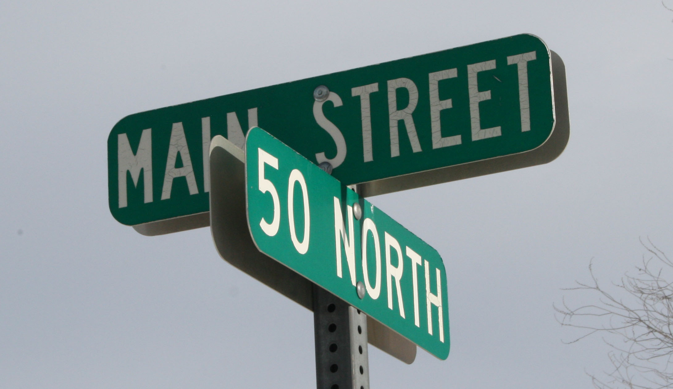 I circled the location of the sign in red here, on the building behind the ILX.  Photoshop skills at their finest.