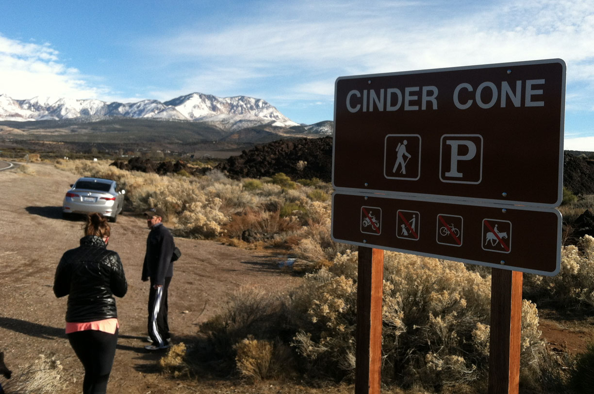 About 10 miles up the road, we arrived at the trailhead for the Cinder Cone hike.  The hike itself was only 3/4 of a mile long each way, but it traverses some rocky / jagged terrain and ascends about 500 feet in elevation.