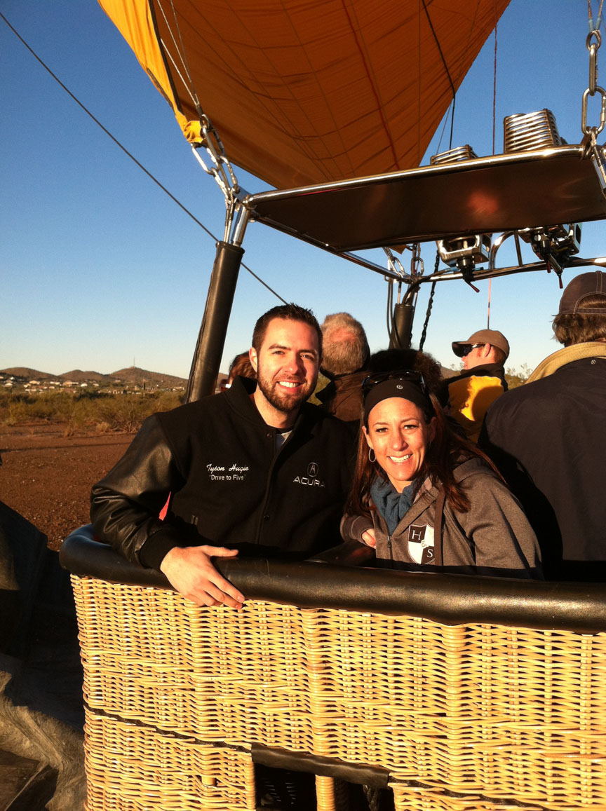 I’ve always wanted to take a hot air balloon ride, so Friday morning I fulfilled that wish on my 31st birthday!  My stepmom Tanya and I headed to North Phoenix near the Deer Valley airport in the Legend, arriving at 7:00 a.m. for our sunrise flight with Rainbow Ryders.
