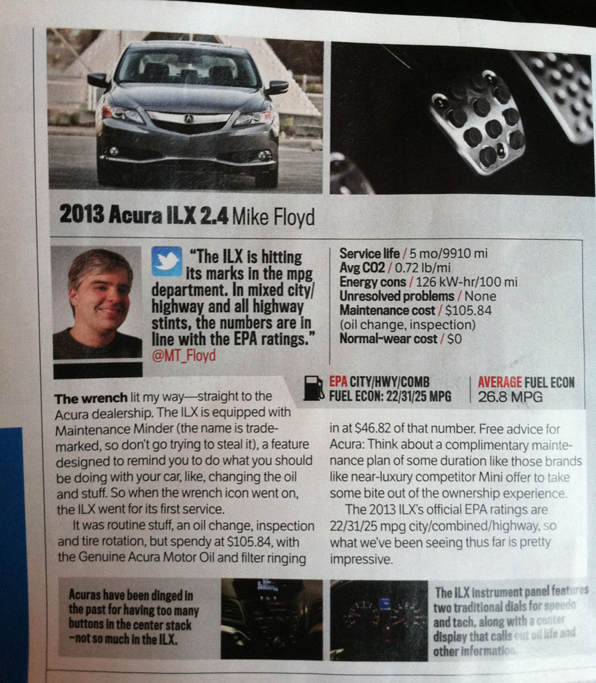 The ILX is returning 32.0 mpg currently. I can’t remember when I last reset it, but the EPA estimate according to the factory window sticker is 31 mpg highway, so I’m beating that (and with mixed driving, too).