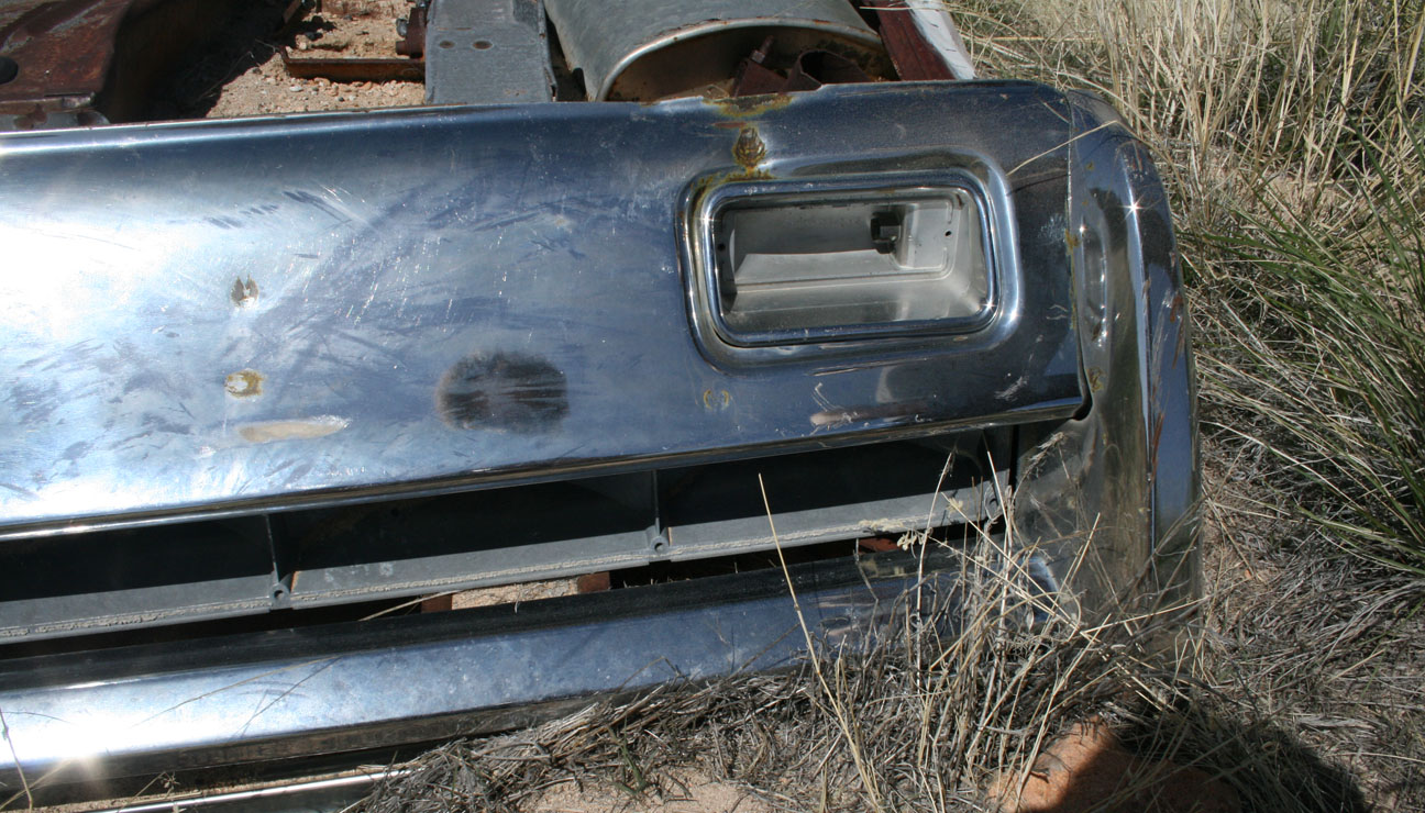 Close up of the back bumper and a slight look at the muffler. I couldn’t believe how immaculate the chrome looked, while everything else had completely rotted away.