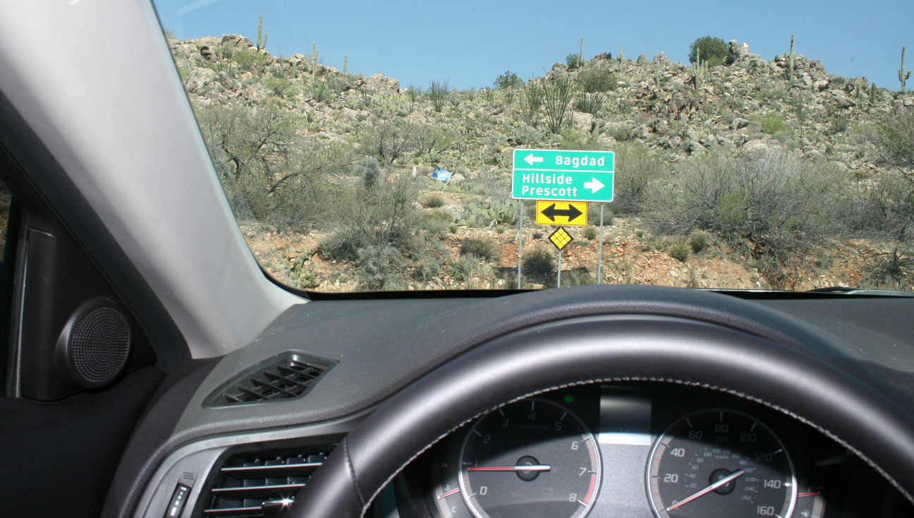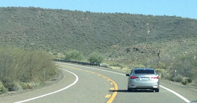 Back in the ILX, we looped around Highway 97 toward Kirkland, Peeples Valley, Yarnell, and Congress, and then reconnected with Highway 93 after a dramatic drop in elevation on Highway 89. A few stretches of this road were just one-lane.