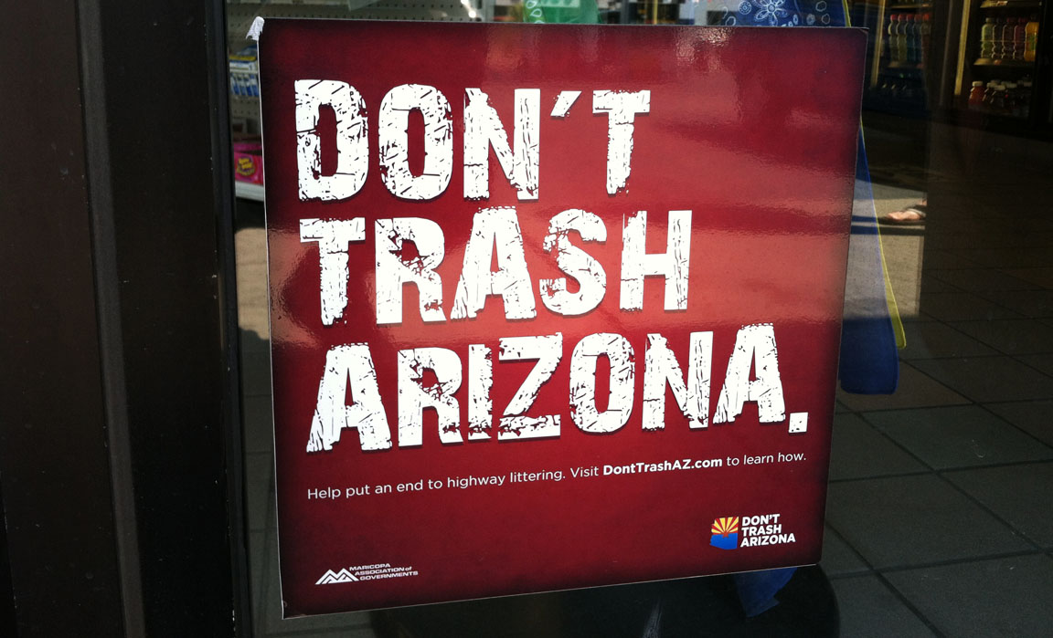 I saw this sign posted on the window of the convenience store and it reminded me of a similar anti-litter campaign from the days when I grew up in Utah called “Don’t Waste Utah.”