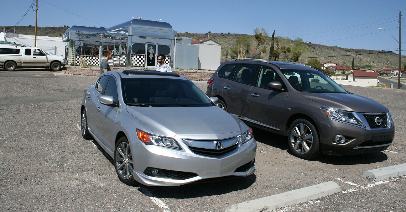 For this trip, Justin and I took the 2013 Acura ILX 2.4 6-speed and my friend Matt took a “test vehicle” from his work at the Nissan proving grounds. This is a Medium Brown Metallic 2013 Pathfinder 2WD “Platinum” with leather and a huge sunroof.