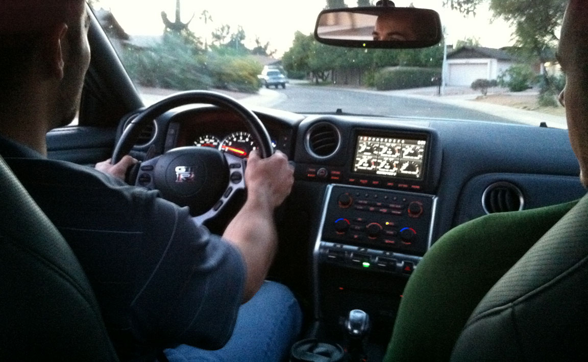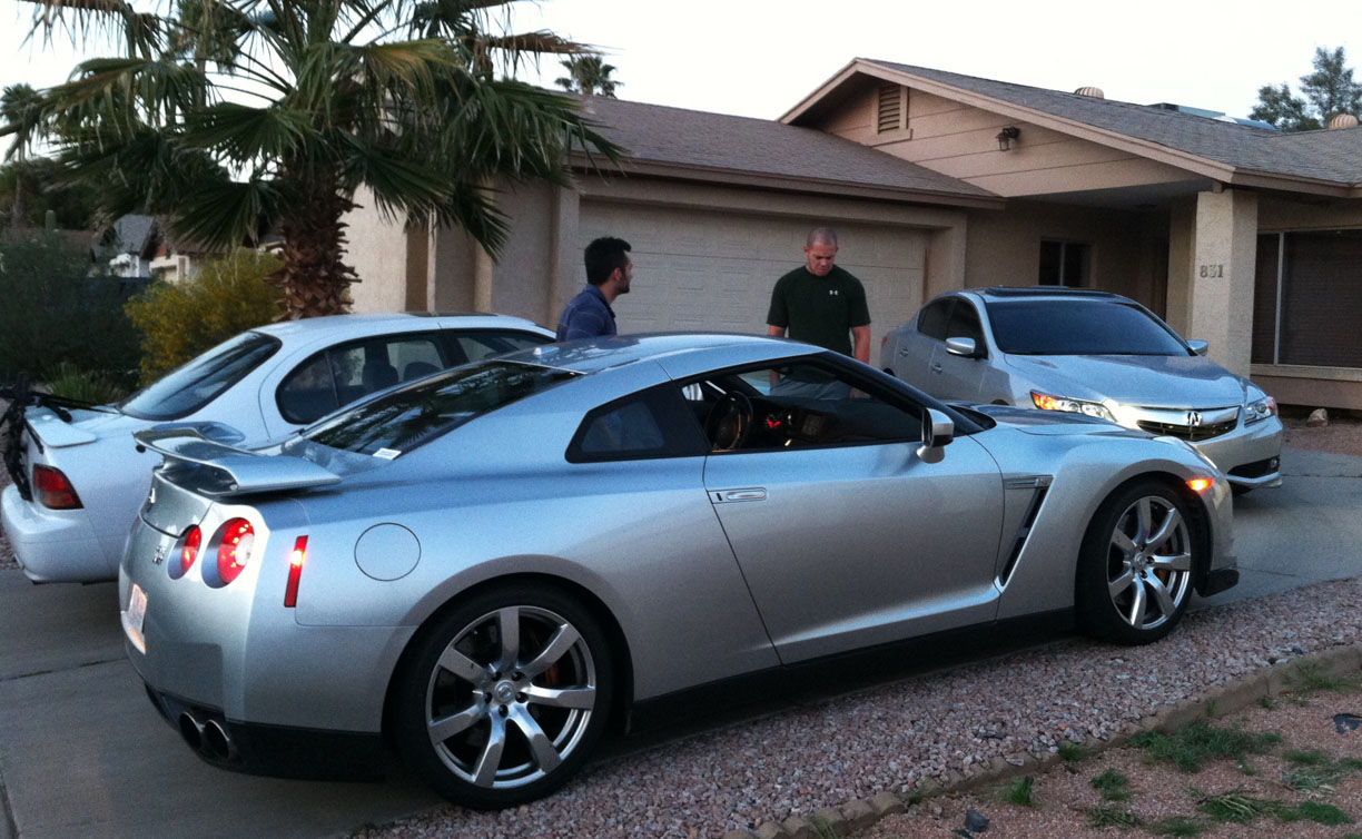 Tonight, my ILX met a new silver-painted friend.  My friend Matt brought over a 2009 Nissan GT-R that he’s doing some evaluations on for his work at the Nissan proving ground near Maricopa, Arizona.  We took it for a (fast!) spin around the block.  This thing has a 3.8 liter twin turbo motor with horsepower in the high 400’s.  I got a little motion sick!  Whiplash anyone?
