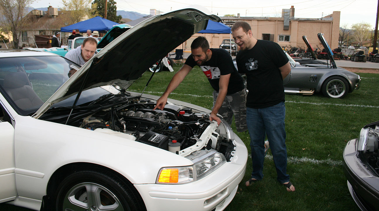 My friend Branson and his dad Don arrived in the evening. After some late-night car detailing, we all set out very early in the morning (6:45 Utah time; 5:45 Arizona time) on Saturday morning for the car show in Hurricane, Utah which was about 20 miles away. We got great parking spots on the grass lawn.