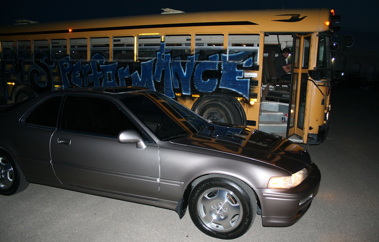 Obligatory bus + Legend shot. The bus was spray-painted by an employee of my brother’s company for the event they used it in.