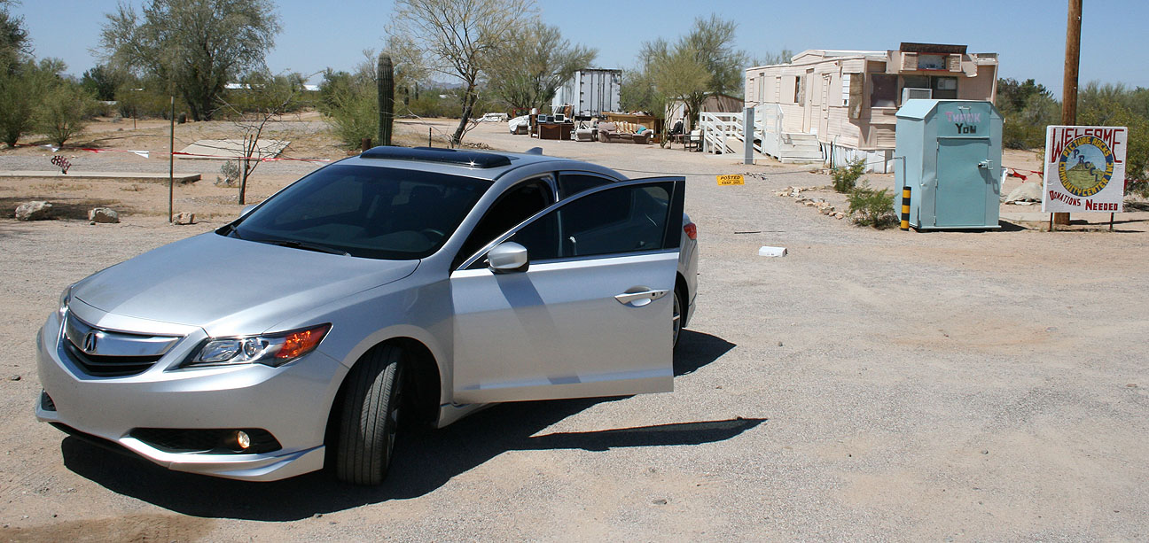 In the below picture, see the vehicle parked in the shade underneath the arch that’s farthest away? That is a blue 1980’s Pontiac Sunbird. When I pulled up behind it in the ILX, a young man shot up lightning-fast in the driver seat. He’d been napping in there. I think I gave him the scare of his life this afternoon! After parking, I assured him that I was “nobody,” and that I didn’t care if he was catching some shuteye on the shade. It looked like he’d been living in his Pontiac for some time.